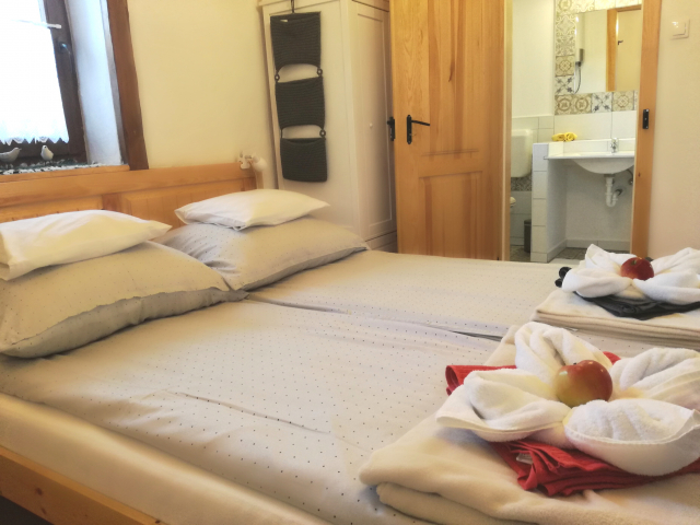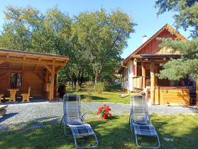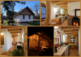 A vendégházunk 60 m2-es, ami 8000 m2-es portán található és egy nagy, fedett, kertre, erdőre néző terasz, tűzrakó hely és 2 autó számára alkalmas parkoló tartozik hozzá.